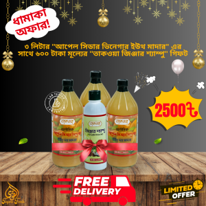তাকওয়া আপেল সিডার ভিনেগার উইথ মাদার – ৩ লিটার (ডেলিভারি চার্জ ফ্রী) সাথে ৬০০ টাকা মূল্যের তাকওয়া জিঞ্জার শ্যাম্পু গিফট। অফার সীমিত সময়ের জন্য