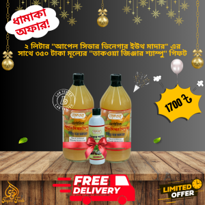 তাকওয়া আপেল সিডার ভিনেগার উইথ মাদার – ২ লিটার (ডেলিভারি চার্জ ফ্রী) সাথে ৩৫০ টাকা মূল্যের তাকওয়া জিঞ্জার শ্যাম্পু গিফট। অফার সীমিত সময়ের জন্য